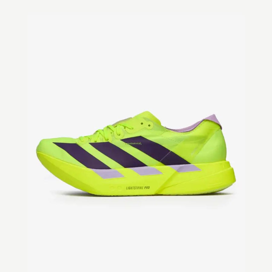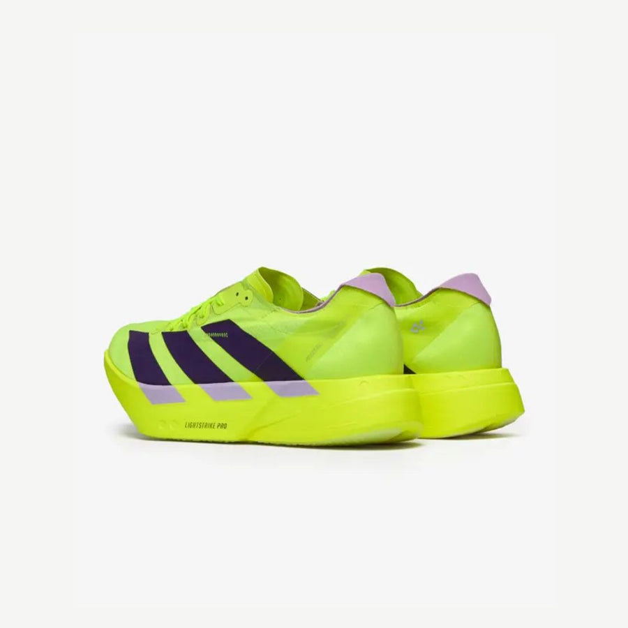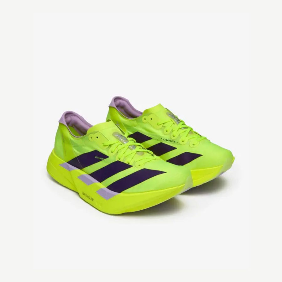 Proven to be the world's most winning shoe, the Adizero Adios Pro line is the pinnacle of Adizero Racing shoes. The Adios Pro 4 is made for fast runners who want to experience faster, with enhanced features designed to optimize running efficiency. Our carbon-infused ENERGYRODS 2.0 provide a seamless transition from heel to toe for a snappy, efficient stride. In the midsole, a new rocker point offers improved running economy. A double layer of our best-in-class ultralight LIGHTSTRIKE PRO ensures cushioning for every quick stride you take, helping you maintain energy over the long term. The shoe rides on an outsole built with Continental™ rubber for a no-slip transition during toe-off, as well as LIGHTTRAXION, designed to reduce weight without sacrificing grip.